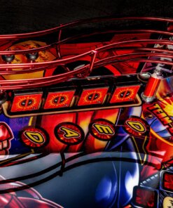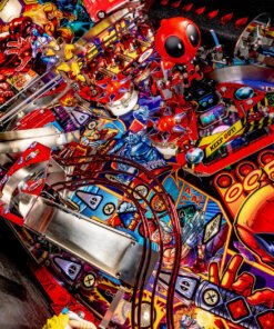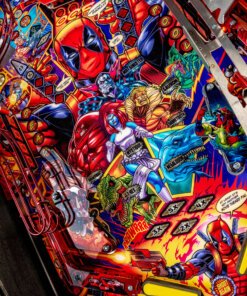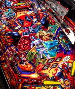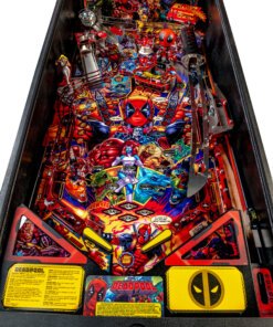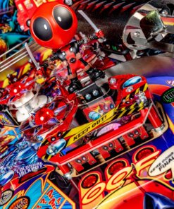 “Deadpool” is known as the “Merc with a Mouth” because of his talkative nature & is notorious for his outrageously funny offbeat humor which is featured throughout the game.nnPlayers will be immersed in the Deadpool universe, teaming up with iconic X-Men characters Wolverine, Dazzler, Domino, and Colossus as they battle against infamous villains Juggernaut, Sabretooth, Mystique, Sauron, and Mr. Sinister. Players will also tag along with Deadpool on his time machine quests as he battles against the T-Rex and the Megalodon.nnStern’s Deadpool Pro, Premium, and Limited Edition models feature stunning and distinctive hand-drawn art by renowned illustrator Zombie Yeti. Well known actor Nolan North stars as the eccentric voice of Deadpool. Each game features a 3-bank drop target with a ball lock that’s guarding a custom molded Lil’ Deadpool bash toy target. In addition, all models include two stainless steel and wireform ramps with a Katana Sword ramp return. Deadpool pinball entertains with an amazing array of ninjas, vampires, and chimichangas, making it suitable for all skill levels.nnThe Premium and Limited Edition models feature an additional 8 drop targets, motorized disco ball with disco illumination effects, custom molded Wolverine and Dazzler action figures, and with a custom molded chimichanga truck time machine. In addition, these models include an actuated up/down ramp that feeds the right flipper from the left orbit, keeping the action continuous and fast. All Premium models will include a custom “Deadpool’s Mix Tape” cassette featuring 11 original music tracks with sleeve art by Zombie Yeti.