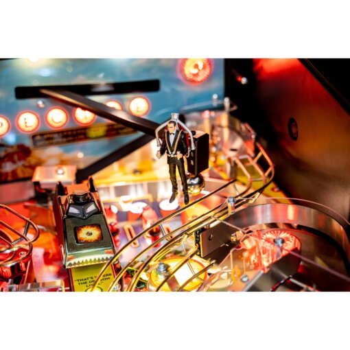 The James Bond 007 pinball machine features the original 007 actor, Sean Connery.nnIn Dr. No (1962) Sean Connery propelled 007 into the cultural zeitgeist, bringing the legendary literary figure to life through adrenalized action sequences, ground-breaking gadgets and effects, memorable characters, and timeless villains.nnStern’s James Bond 007 pinball machine will highlight film footage and iconic music from the films that built the 007 legend: Dr. No, From Russia With Love (1963), Goldfinger (1964), Thunderball (1965), You Only Live Twice (1967), and Diamonds Are Forever (1971). Players are immersed into the world of espionage in this action-packed pinball experience, tackling assignments, teaming up with key allies, and stopping SPECTRE’s villainous schemes.nnGather gadgets from Q Branch as pinballs get ejected through the roof of a custom sculpted Aston Martin DB5. Break through the Osato Chemicals drop targets to battle SPECTRE at the Bird 1 rocket base. And hold your breath on the gravity defying, magnetic jetpack as it transports pinballs across the playfield.nnJames Bond 007 pinball include Stern’s award-winning Insider Connected™ system, which enables players to interact with the game and a global network of players in a variety of ways. Through Insider Connected, players can track progress, earn new game-specific achievements, engage with the player community, and participate in promotions and Challenge Quests. Insider Connected also provides an operator-focused toolset to drive location play through Location Leaderboards, build player loyalty, analyze performance, make adjustments remotely, and maintain the machines.