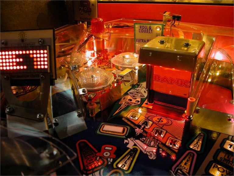 nSome of the MONOPOLY® pinball machine’s classic features include: an Electric Company billboard, a bi-directional, rotating mini-flipper in the Water Works, and a Ride on the Railroad ramp. Also, you can take a lesson from MR. MONOPOLY® and break the Bank, start the cash grab, and shoot the upper ramps for big MONOPOLY® points. The goal of the MONOPOLY® pinball machine is to move your piece around the game board, collect properties, and lock balls. When you pass GO, multi-ball will start and you can become the millionaire you’ve always dreamed of being!
