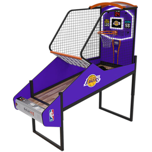 NBA Game Time Pro Basketball Arcade is ICE’s newest pop-a-shot style machine designed for a home arcade. With a real hardwood floor and an official NBA license, you’re looking at the latest and greatest in arcade basketball that would be the perfect addition to your home arcade.nnGame Modes:n* Arcade — The classic basketball arcade game. Players race against the clock to score as many points as possible. Score 75 to get to the 2nd round. Score 100 to get to the 3rd (final) round. See who can get the all-time high score with this arcade classic.n* Money Ball — core points by making baskets — Race against the clock to score as many points as possible. Money signs are worth bonus points. $ = 5 PTS, $$ = 10 PTSn* Pig — The classic game takes on the arcade. Players take turn attempting shots. If a player misses, they get a P, they miss a second time I and the third time they miss they will get a G and be removed from the game. Last player standing wins. Creativity is key — off the side bank shot? Blindfolded?n* Last Shot — Get as close to zero as possible. Timer counts down from three seconds. Each player gets four shots per game.nnOther Features:n* Officially licensed NBA graphics package.n* Removable top arch to accommodate 8ft. (96″) ceilings (height is adjustable from 87″ to 101″)n* Real hardwood floorn* Up to 4 playersn* NBA LICENSE Option — choose between all 30 NBA teams (+250)n* Floor Add-on with NBA generic logo or choice of any of the 30 NBA teams (+200)n* Easy assembly