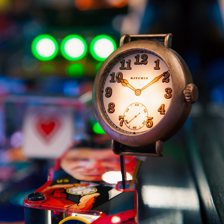 nLegendary pinball designer Mark Ritchie masterfully crafted a playfield which on its surface appears comparable to games from this era but outside of initial perception features more mechanisms and greater depth than most games produced today. David Thiel forcefully pulls the player into this world utilizing over 250 iconic lines from Pulp Fiction’s legendary cast, five licensed songs from the original movie soundtrack, and a number of original compositions. Josh Sharpe developed an approachable rule set that is both intuitive and deep enough to engage even the most skilled player. Scott Pikulski’s vintage inspired art package is both stunning and perfectly cohesive.
