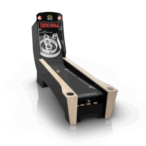 Keep the good times rollin’ at home with this arcade classic!nnDesigned for the arcade enthusiast, game fanatic, and kid in all of us, our Premium+ alley brings the authentic arcade features you know and love right to your home.nnIt’s beautifully handcrafted in the heart of the Midwest where quality, fine details, and authenticity combine to create a masterpiece you’ll be proud to show off.nnPremium Features:n• Arcade-style solid balls, rubber targets, and cork rampn• Partially assembled, just connect head and rampn• Colorful pixel display with exciting visualsn• Official Skee-Ball® soundsn• 6 game modes that allow 1-6 playersn• Lit target area and color changing under-glown• Stunning natural hardwood maple trim decked with a cup holder