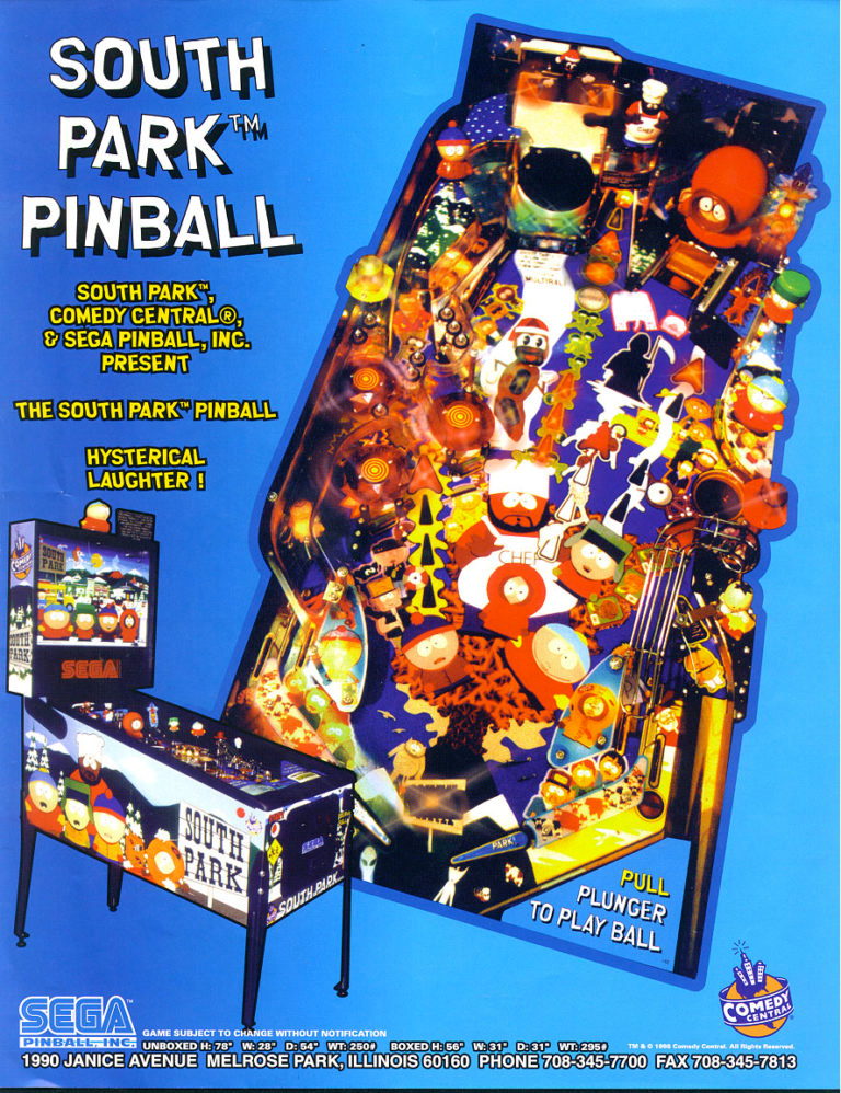 nSouth Park pinball machine is a 1998 game released by Sega. It is based on the Adult animated TV series of the same name.