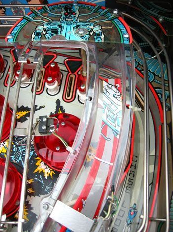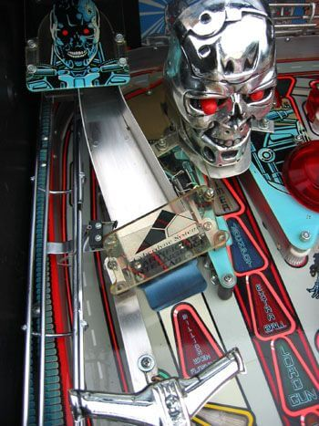 nThe table is the first Williams WPC machine designed to feature a dot-matrix display. But due to the long design phase, Gilligan’s Island was the first manufactured with a DMD. Terminator 2: Judgment Day was the first game to feature an autoplunger (replacing the traditional plunger), as well as a ball-firing cannon. Finally, T2 was the first game to feature a video mode, a mini video game featured on the DMD. Arnold Schwarzenegger provided voices for the game. The playfield design was based on Ritchie’s 1980 classic, Firepower. T-1000 was not included in the artwork of the table, with the exception of a small image of actor Robert Patrick because of pre-release secrecy of the movie. The character was only included in the display animation because when the DMD programming was finalizing the liquid metal character was already public knowledge.
